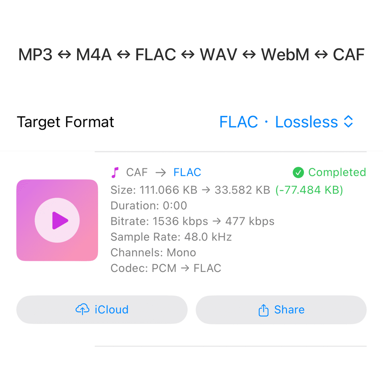 - 发烧级无损转换: 支持 FLAC 和 WAV 等无损格式的互转,完美保留音乐的每一个细节。